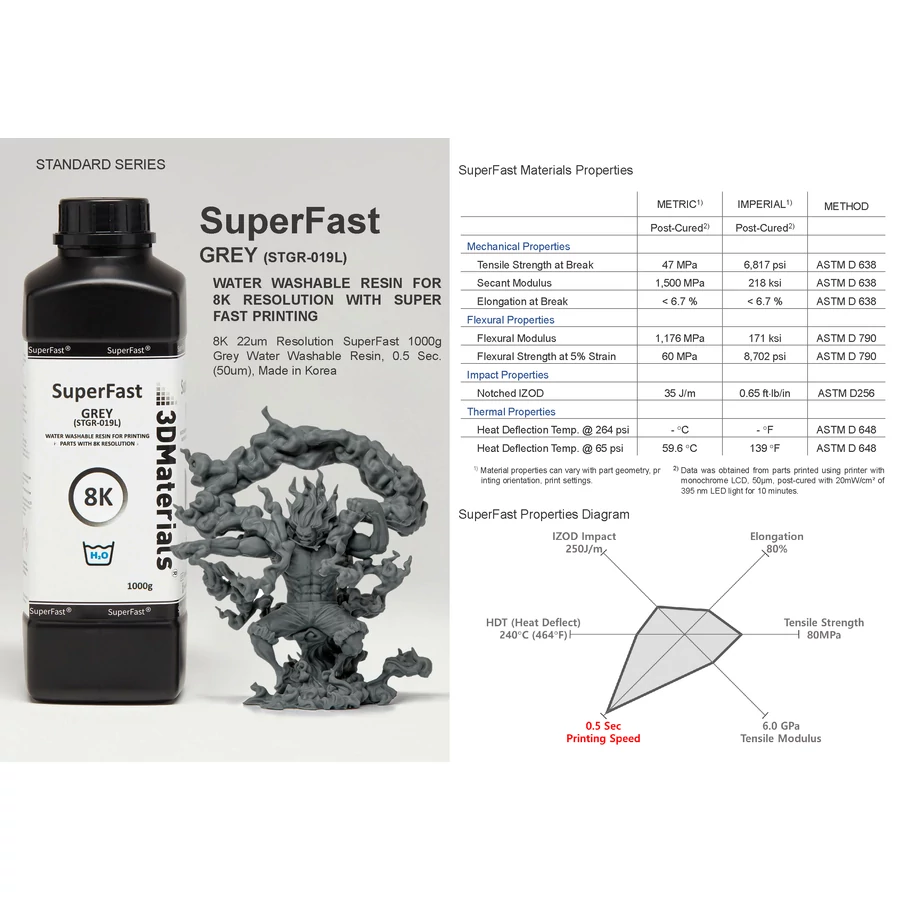 3DMaterials SuperFast® - Grey [Vízzel mosható, 8K, Szürke] - 1 kg