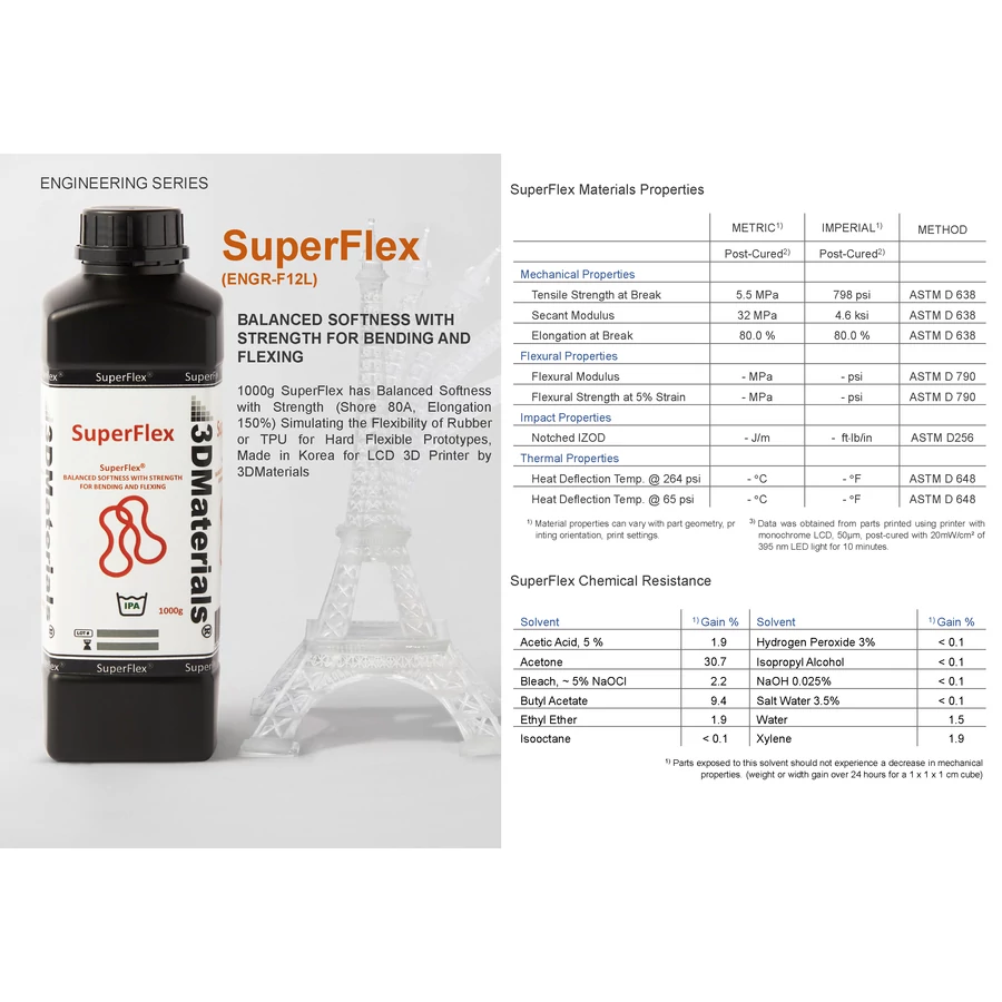 [Kiegyensúlyozott lágyság és keménység] A SuperFlex műgyanta puhasága és erőssége kiegyensúlyozott, így kiválóan szimulálja a gumit vagy a TPU-t a kemény, mégis rugalmas prototípusokhoz.